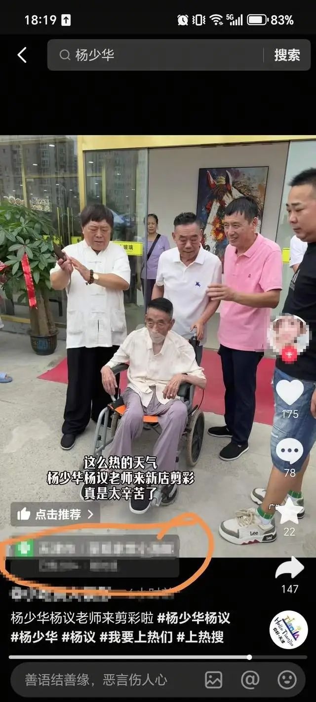 此外,九派新闻注意到,在社交平台上,7月9日上午,杨少华还参与了天津一家饭店的剪彩。视频显示,杨少华坐着轮椅,身后有几人陪同。